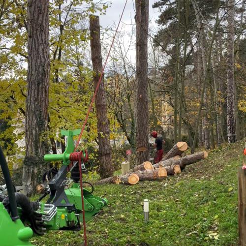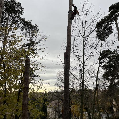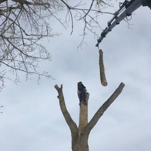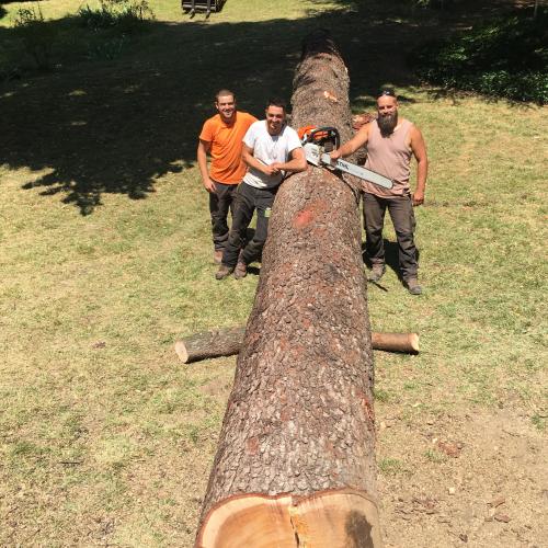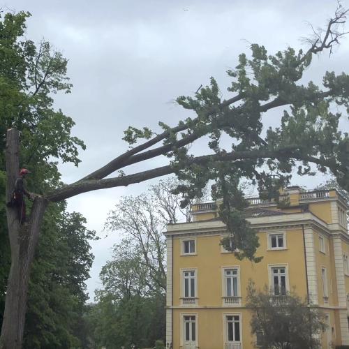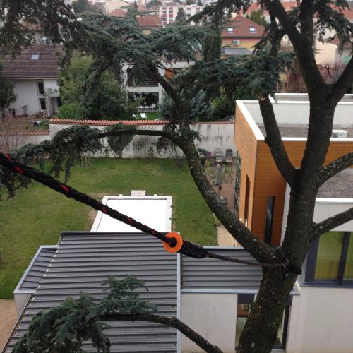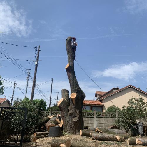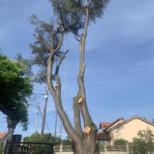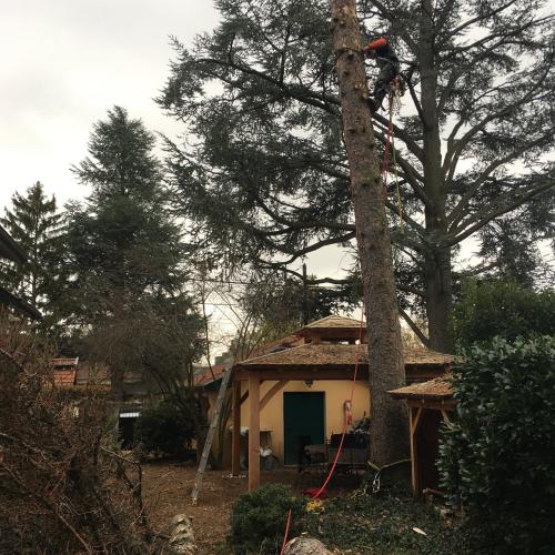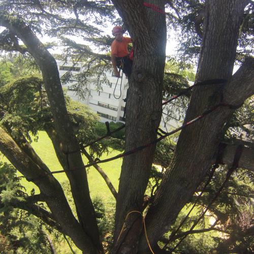 d'un matériel spécifique au démontage d’arbres de grande hauteur.