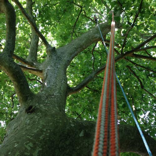 Le haubanage a pour but de consolider et de renforcer des parties d’arbres, des branches indispensables à la forme naturelle, à la valeur esthétique de l’arbre, et qui nécessitent un support à des fins sécuritaires.